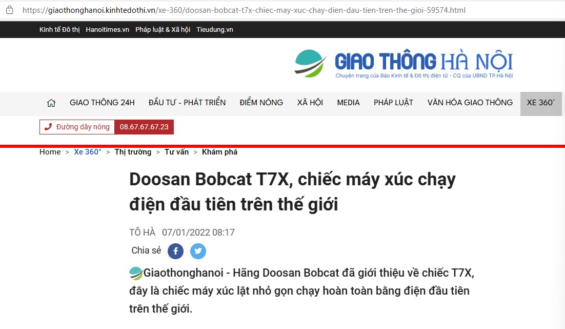Vừa qua, tạp chí Giao Thông Hà Nội tại chuyên mục Khám Phá đã có bài viết giới thiệu về xe xúc trược bánh xích chạy Điện đầu tiên trên thế giới BOBCAT T7X.