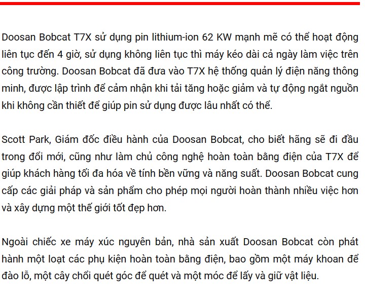 Link nguồn: Doosan Bobcat T7X, chiếc máy xúc chạy điện đầu tiên trên thế giới (kinhtedothi.vn)